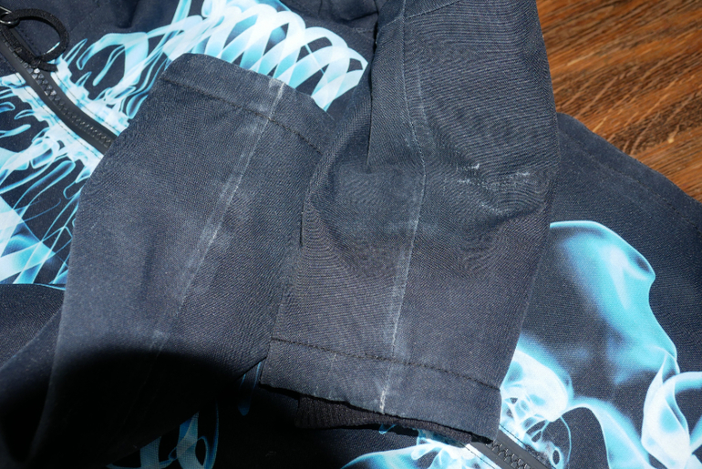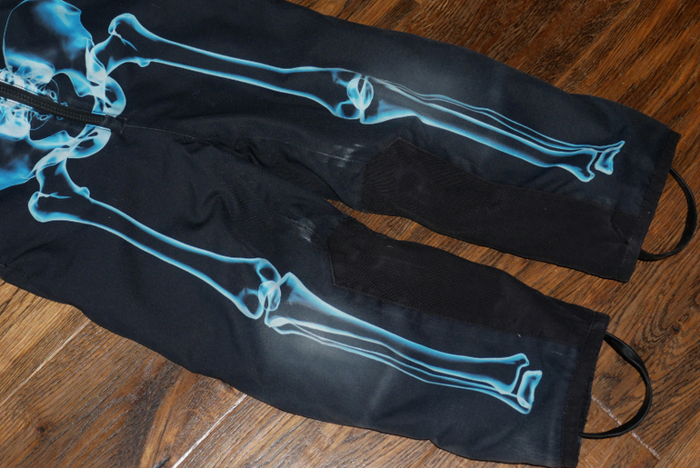 Теперь о минусах (все на фото): сын очень активен и любит зиму, горки, крепости-потерли колени, попу и низ штанин, где липучки, а так же манжеты. Повреждений нет и ткань не пострадала.