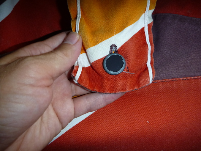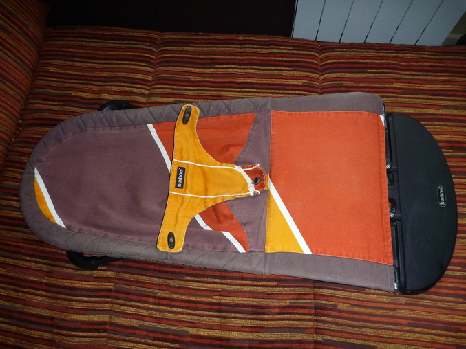 Конечно видно, что им пользовались, краски чехла от стирок стали не такими яркими (новые чехлы стоят 2000 р.), есть царапины на каркасе, из самого значительного - облезла центральная пуговичка на пристегном поясе (см.фото).