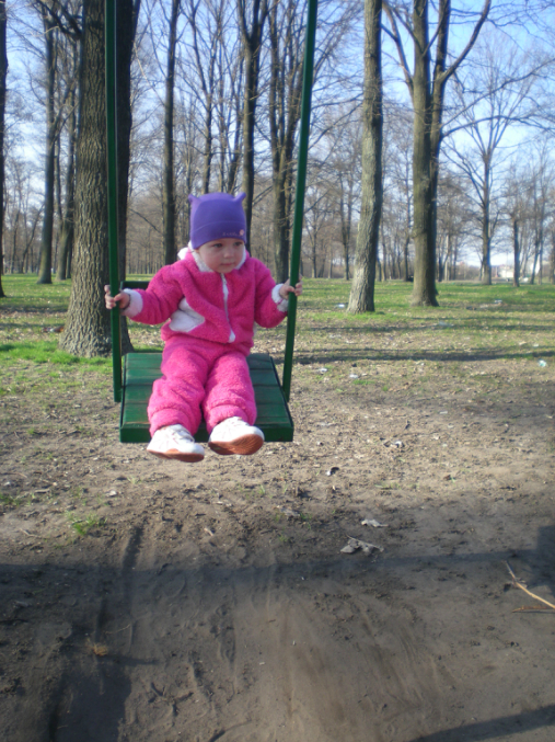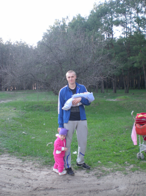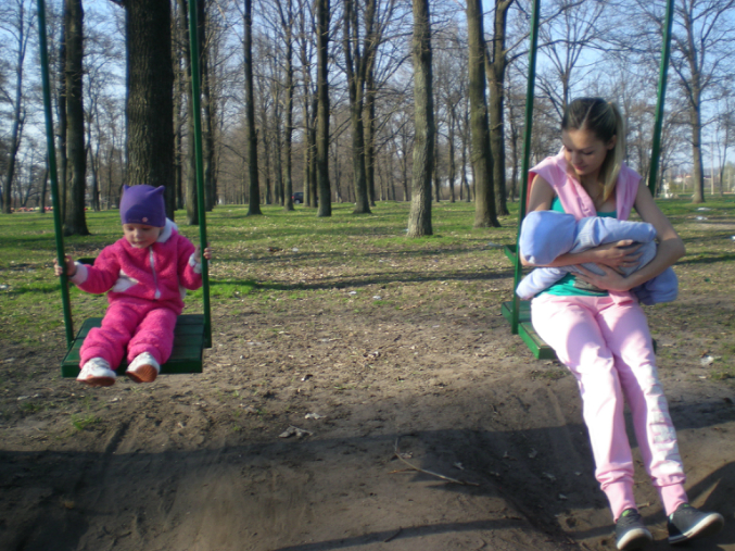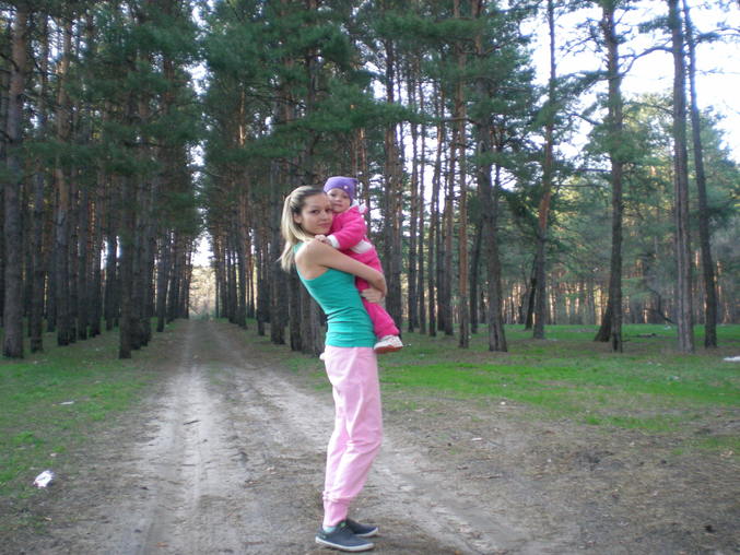 1,5 мес после родов.(Средина апреля,первое тепло...и мы вышли в лес на прогулку)