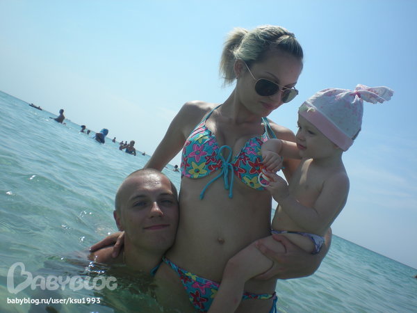 Впервый раз мы поехали на море без Санички так как родители не разрешили тип она еще оч маленькая. Но там много было маленьких деток и Лешка решил, что и Санька должна побывать на море...тут уж никто перечить и не стал...раз папа так решил!Сашунька по началу боялась, а потом и забрать ее с пляжа было невозможно)))