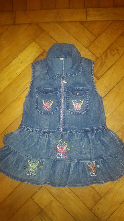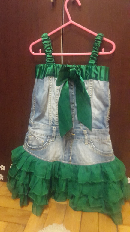 Джинсовый сарафан без рукавов. Без маркировки. Рост примерно 110-116. Цена 500р