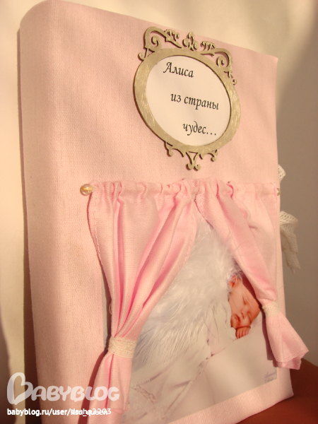 Одна из них-это записи про нашу Алису. Блокнот хотелось,чтобы был именной,красивой,подходящий для Алисы,а не купленный)И такой блокнот мне сделала мастерица ББ по скрапбукингу http://www.babyblog.ru/user/lenta/dasha2203