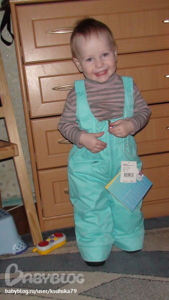 Раньше в инет не выходила, поэтому отвечаю с опозданием. По ощущениям он тепленький, но , конечно, если от -10до -15, то обязательно помимо другой одежды флисик или шерсть! Думаю для очень резвого ребенка до-10, кроме нижнего белья и термобелья ничего не надо. В куртке анонсировано 200гр.утеплителя, а в штанах 100гр. Снизу в штанах есть дополнительно резиночки, в куртке юбки от снега нет, но там в кармашках есть утяжка для низа курточки. На мой взгляд капюшон удобный .Лямки регулируются липучками на штанах, мало того там еще есть запас, см5, он зашит, его освободить легко, подпоров ниточку.На фото доче 1год 6мес.рост 79см., вес 10кг., размер 2т получается, что сейчас нам великоват, к середине осени будет хорошо, а к весне след.года можно будет воспользоваться специальной системой в штанах и куртке(удленяются рукава и штанины, засчет вшитого запаса). Если ребенок очень пухлый, больше 15кг., то костюм 2т- будет тесный.