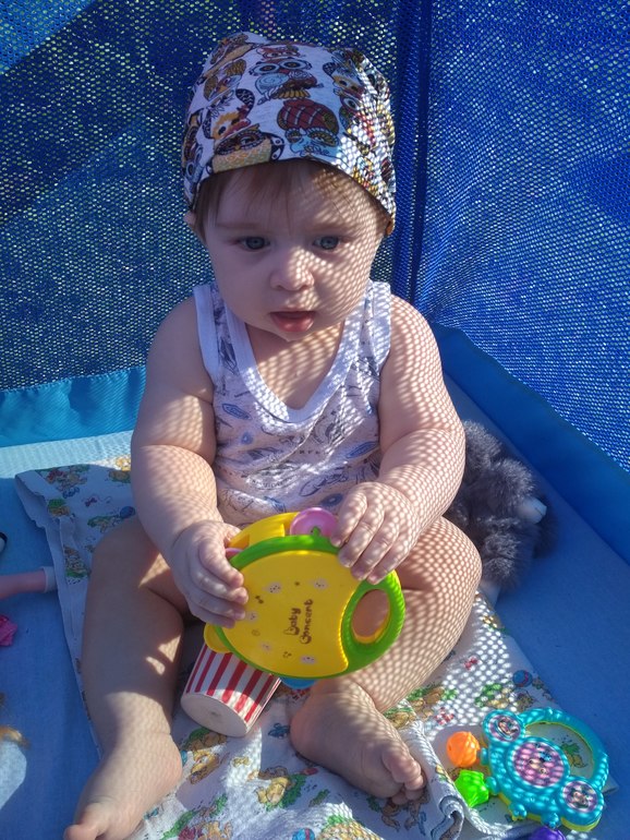 Взрослеет Илюха даже для меня слишком быстро. В ходунках бегает хорошо. Правда не прямо,а поворачивает боком и бежит. Только успевай ноги убирать. Переворачивается хорошо. Ползать толком не хочет. Хотя в попытке стащить пульт перебирает ногами со скоростью света. А так в основном пару раз ноги переставит, вперёд прыгнет на пузо и все. Видимо ему и так достаточно. Вырывается сползать с дивана и ходить за ручки. За кисти,не подмышки. Ножки в основном на носочки ставит,торопится. Но от восторга аж попискивает. Начал изворачиваться в кроватке,хвататься за быльца и привставать. Но ещё не совладал с ногами,путается. Хотя поставишь у опоры,стоит довольно твердо.
