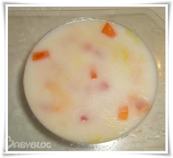 Нам потребуется: прозрачная основа 90 гр., белая основа 90 гр., масло ши 2/3ч.л., мед 1 ч.л., сухое молоко 1 ч.л., красители – желтый, оранжевый, красный, отдушки мед и горячее молоко – по 15 капель. Прозрачную основу 30 гр., режем на кусочки, добавляем 1/9ч.л. масла ши