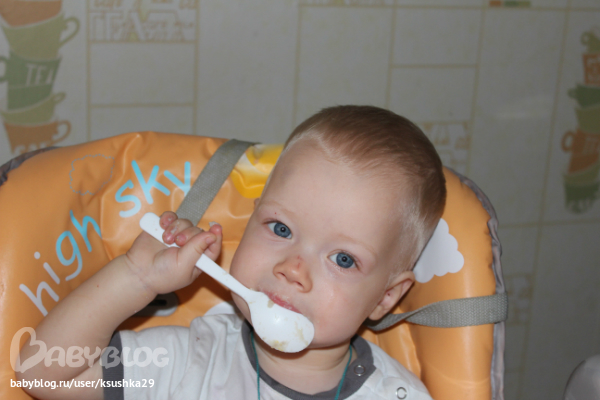 САМИ КУШАЕТЕ!!! ВОТ КЛАССНО!!!! Мы пока нет.. но я даже ложки не даю в руки )))) /шучу/ Вся кухня в каше потом ))) Ну какой же лапочка... красавчик!