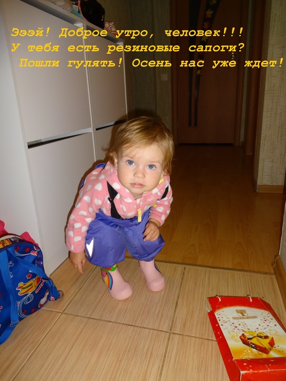 У нас пока погода позволяет без резиновых сапог гулять))..А какие вы волосатые уже!)) у нас наверно только к первому классу волосы погустеют и подрастут)))И все смотрю на уголок плинтуса(точнее его отсутствие) ..я думала только у нас такие плинтуса))))...
