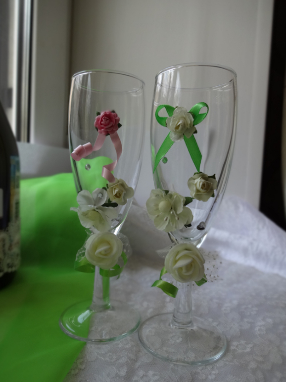 Далее под кат- арка и тумба для выездной регистрации, кое-что для конкурса "первенец" и для аттракциона "с чего начать молодой семье", а так же апгрейд фужеров и шампанское в деталях.