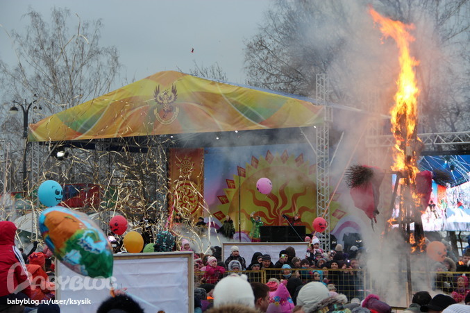 Последний раз я видела как горит чучело масленицы еще в школе((( почему? ни когда не было это интересным!!! Но сейчас я другого мнения, ребенка стараюсь вывозить на разные мероприятия, пусть даже он не все их понимает, как в этот раз))) Алешке безумно понравилось на празднике, танцы, пляски, карусели, а шоу с сжиганием чучела))))