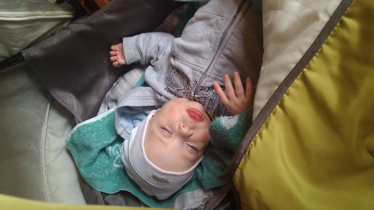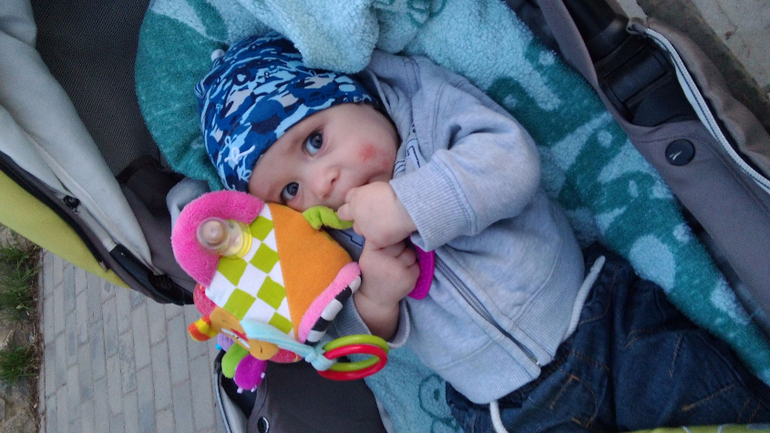 Спит Тёма с самого рождения только со мной. Потому что мы постоянно кочуем с места на место, из города в город...(пусть будет проклята эта война!!!!!!)