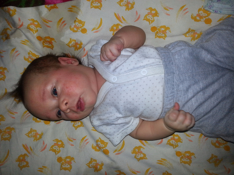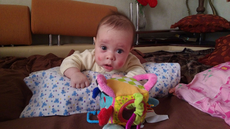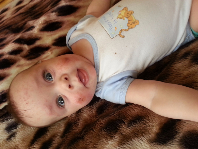 К несчастью, Артёмка очень большой аллергик. И до месяцев 5 диатез был жутчааайший, на ооочень многое. Но в добавок к этому, в перинатальном центре нам занесли стафилококк и разыгрался он не на шутку и у Тёмы, и у меня. Личико у него покрывалось желтыми корками, они сочились, а под ними все было красное, воспалённое. В общем - ужас. Потом мес в 4, на этом фоне, начался жуткий пелёночный дерматит. Не помогало абсолютно нииииичеееего!!! Не проходил он до 6 месяцев вообще, никаими способами!!! Что я только не пробовала... Пока не пришло личико в норму, там тоже не был ужас. Благо, на сегодня всё хорошо. Что могли, то сделали, чтобы избавиться от этой гадоости... Иногда щечки краснеют всё же (от жары, от слёз, тереть любит лицо, и сыпит бывает на то, что я ем тоже - не без этого), но в целом нормально, слава Богу!