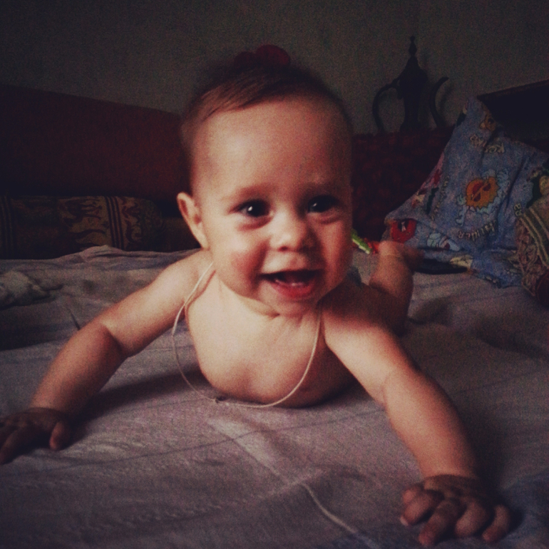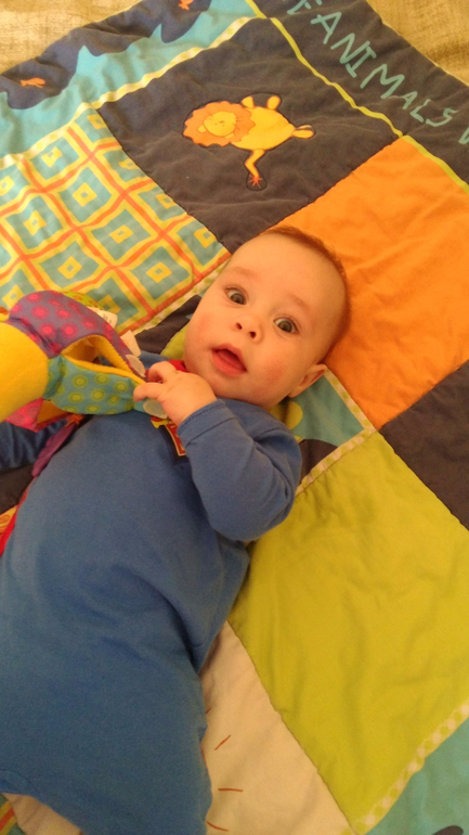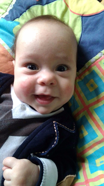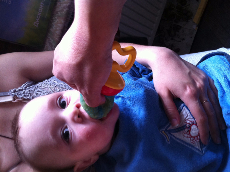1 мая (в 5 месяцев) у Тёмки вылез первый зубик, 11 мая, следом, второй) И по сей день пока два. Не сидит еще, не ползает. Хорошо переворачивается, играется в основном на животе и крутится вокруг своей оси) Очень любит "прыгать", - чтобы его брали под подмышки или за ручки и он отталкивался от опоры. Делает это с задором, шустро, резко, быстро, долго и счастью нет предела! Хохочет, улыбается, верещит))))