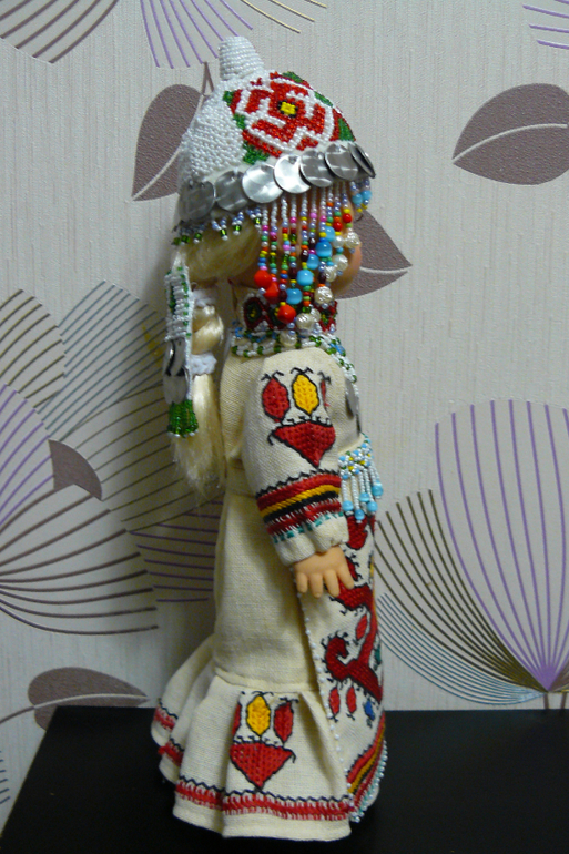 просто офигеть, мало того, что сшить, так еще и наплести-навышивать!!!!! Я со своими возилась четыре дня ( по 2-4 часа) а здесь вообще сколько работы!!!! И вот мне интересно — сколько стоит такая работа, даже без заморочек с бисером? В садике сказали, что из другой группы хотят мне заказать тоже пару в русском костюме, за деньги. А как оценить? Работы много, а на выходе что — ну нарядные куклы. Как быть?