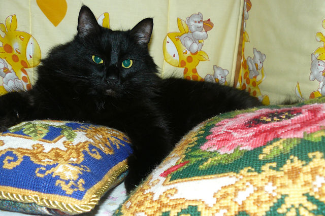 Георгий.Очень интересная личность.Он очень много разговаривает.я таких котов не встречала.Особенно когда доча на пике засыпания,он начинает петь свои песни.Ещё вечно пытается что-то похоронить-еду горшок и вообще всё что не по душе. Когда я была беременная ,лечь было ну просто не возможно.он пристраивался рядом с моей головой и начинал вылизывать их или ,что ещё комичнее.Вычёсывал мне блох.Нет их конечно не было,но жутковато мне было.а вообще когда мы планировали Б он вытягивался во весь рост и старался лечь вдоль ног посередине.И так почти год.Можт хотел помочь.спасибо ,конечно ему ОГРОМНОЕ!!!!!Ну и мужу,наверно.))))))))
