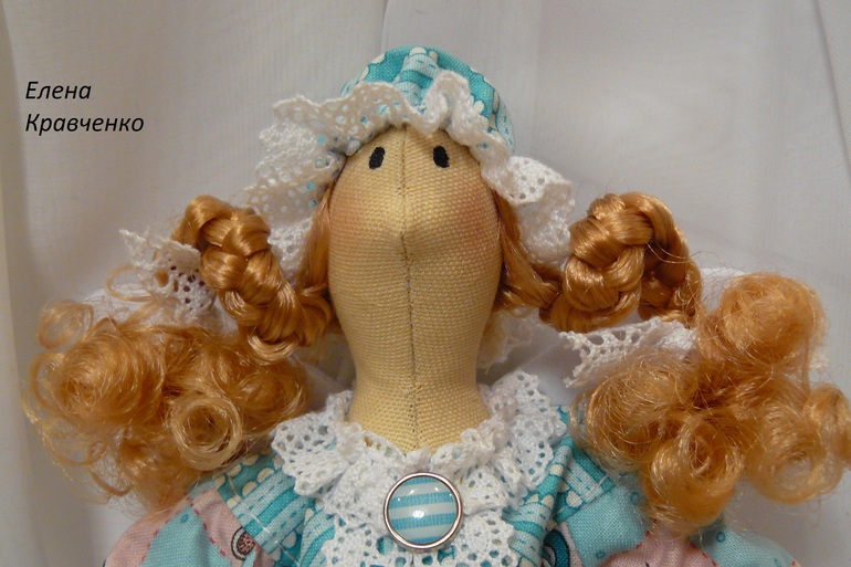 Она высокая стройная.60 см.Сотворённая из натуральных тканей(США,Индонезия,Дания)Она не только интерьерная,но и игровая.Т е всё крепко пришито и прикреплено