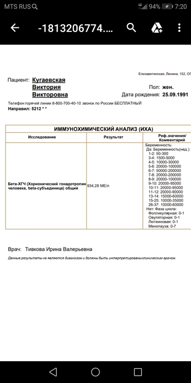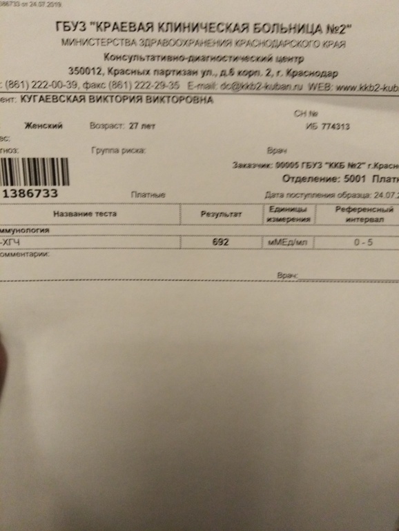 Сказали, что у меня не будет нормальной беременности и скорее всего внематочная. 24.07 сдала хгч 692мМЕд/мл