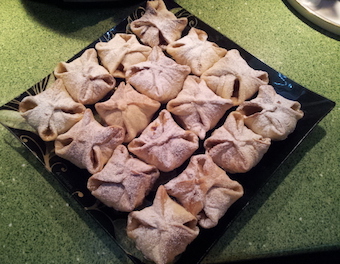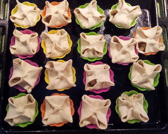 Остается только защипить в виде конвертика (это нужно сделать тщательно, иначе они раскроются при выпечке)