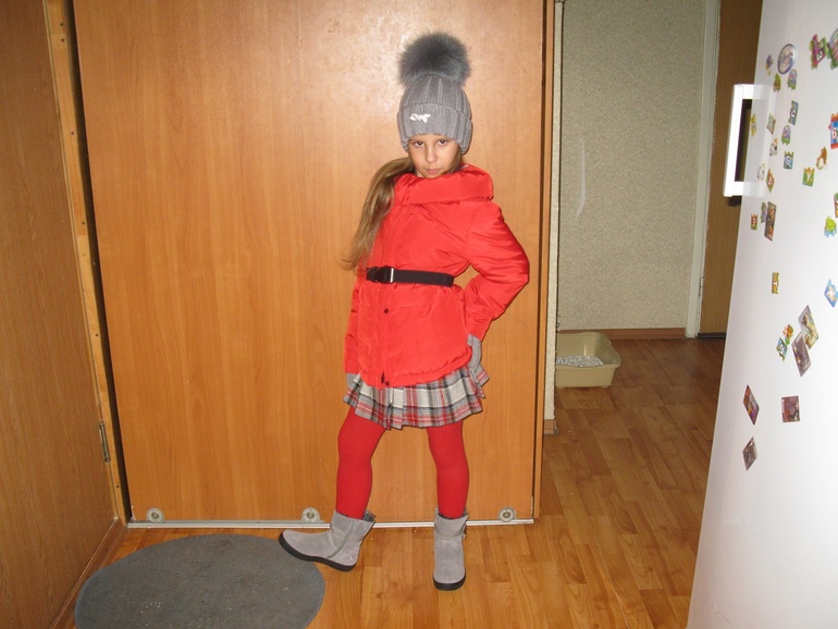 с желтым — это мы на каток. Я туда ей всегда что-то яркое одеваю. Чтобы издалека видно было. Ну мы с красным бум носить или белым или черным....