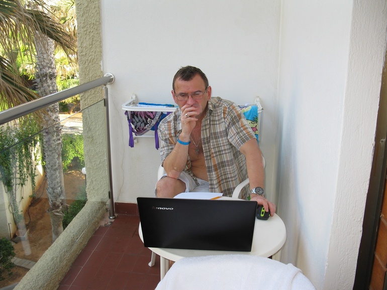 на первых фотках — вечер .... Ну там очень много лежаков было и пляж — большой, а отельчик- не большой всего на 150 номеров... 3 этажа всего...Отель классный, но достаточно бюджетный, без наворотов ...Там в основном итальянцы были. 50% — итальянцы, 30% — русские, остальное — немцы и чехи