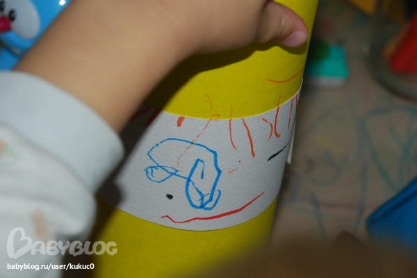 держу, так как сына решил рисовать на цилиндре, а не сначала нарисовать, потом приклеить)