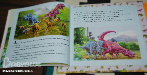 Яркие иллюстрации, добрые, ответственные и заботливые главные герои, не смотря на то, что они - динозавры.