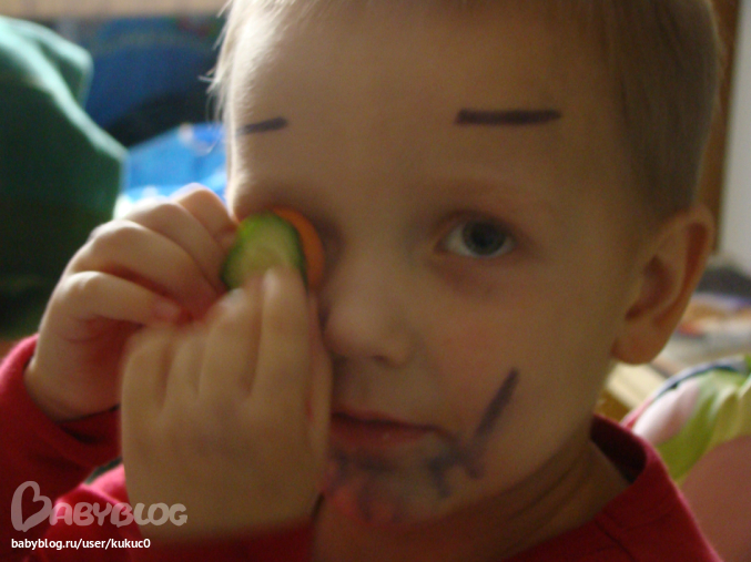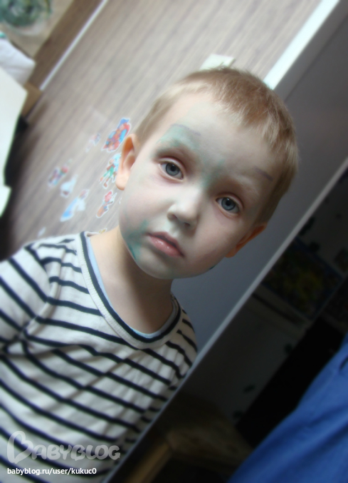ЗдОровский грим у вас))) Чем рисуете? А то у нас разрисовано все, кроме лица, и не отмывааааается почти (икеевские фломастеры для доски), я ноги никому показать не могу, а Алиска такая татуированная в сад ходит