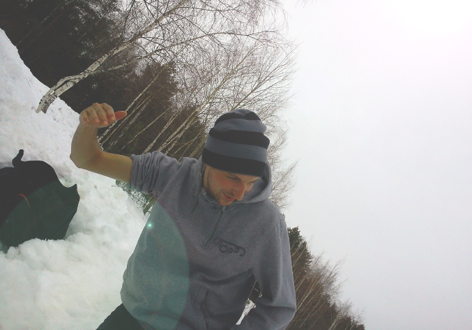слышите? с правой стороны спины сына в небольшой лесочке дятел на дереве постукивает...