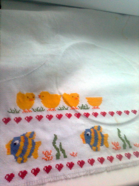 еще так много вышевать успею ли я начала с рыбок так как думала что будет мальчик а дальше будет кораблик.Теперь дальше будет что то нетральное)))))))