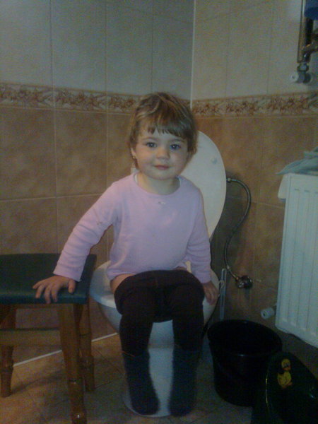 Сама одевается почти правильно,даже держит пальчиком задник когда обувается.Сама садится на горшок и вытерается ,залазит иногда на унитаз