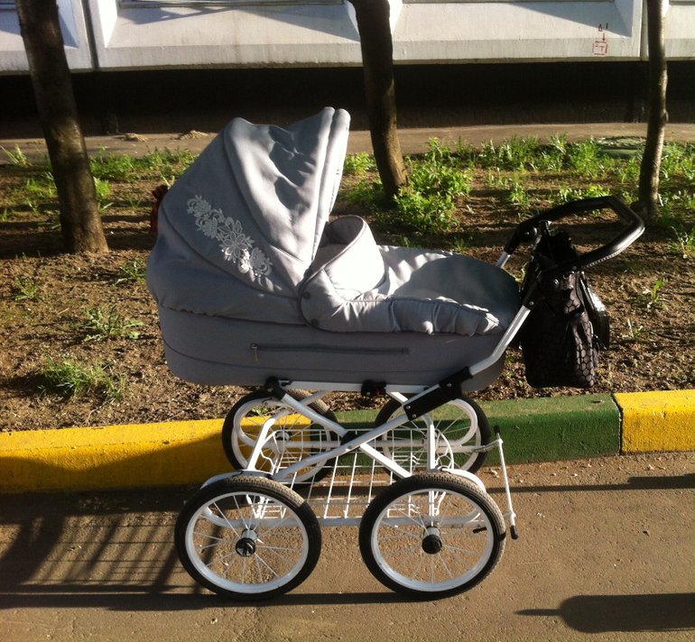 Большая люлька - 86 см. Катались до 10 мес, потом пересели в прогулочный блок.