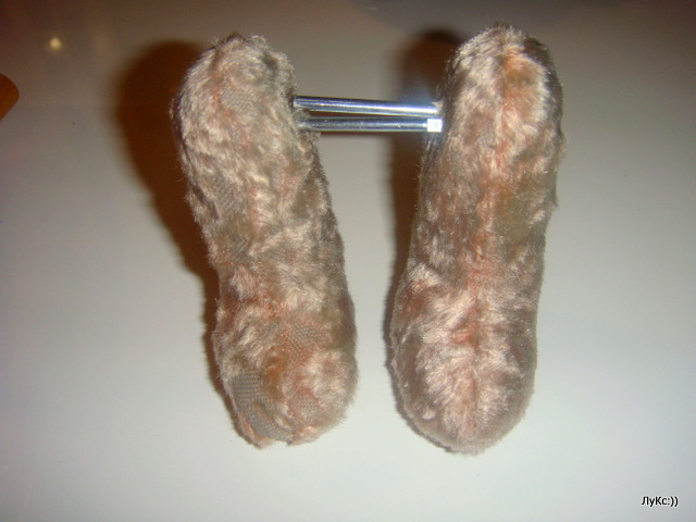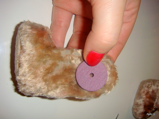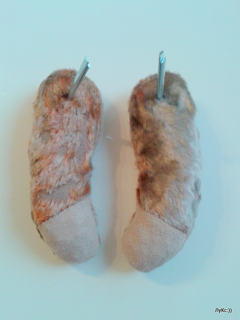 Со второй ногой поступаем так же. Задние шовчики аккуратно зашиваем потайным швом. Иголочкой проходимся по швам и расправляем ворс (не забываем про подошвы!) Ноги готовы!