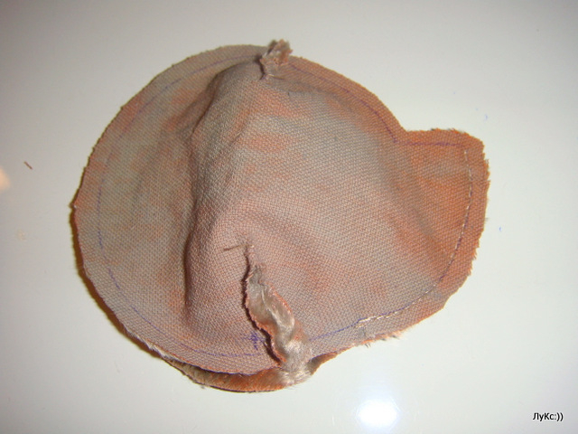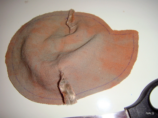 На очереди голова. Сшиваем вытачки ТОЛЬКО с широкого конца, теперь можно обрезать лишнюю ткань, разложив припуски по сторонам. Так поступаем со второй частью головы.