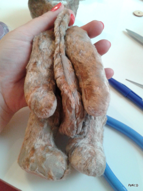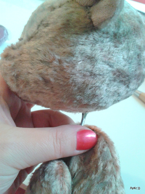 Все то же самое делаем с лапами-руками! Набить ладошки, ставить шплинты и диски, набить и зашить швы. Расправить ворс иглой.