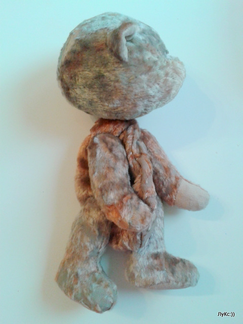 После аккуратно зашиваем отверстие в спине потайным швом. Ворс на туловище расправляем иголочкой)