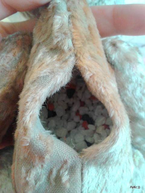 Набиваем немного пузо и попу мишки, затем сыпем пару столовых ложек гранулята (у меня камушки для аквариума)
