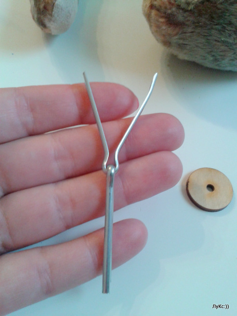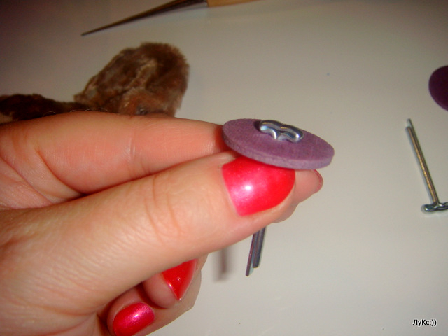 На шплинт одеваем того же размера диск, что и в ноге (я еще и металлической шайбой укрепила), скручиваем плотные "барашки".![]()