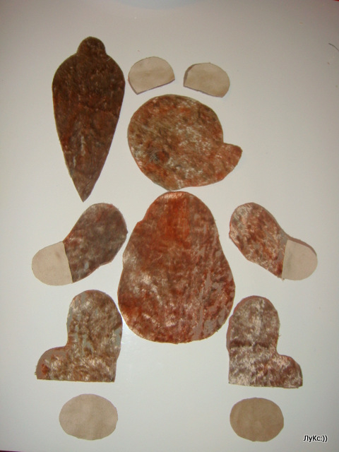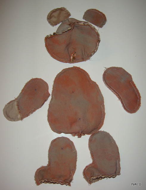 Ну вот мы и сшили все детали нашего теддика) Раскладываем, смотрим)