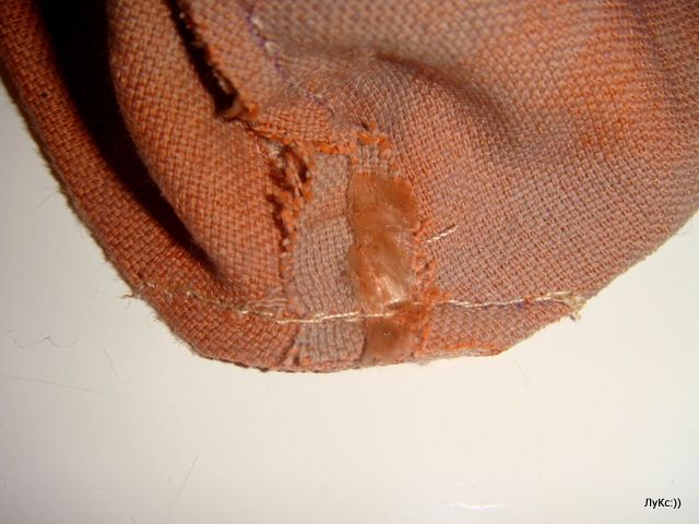 Аккуратно крепкими нитками зашиваем отверстие вот так, как на картинке. Шьем потайным швом.![]()