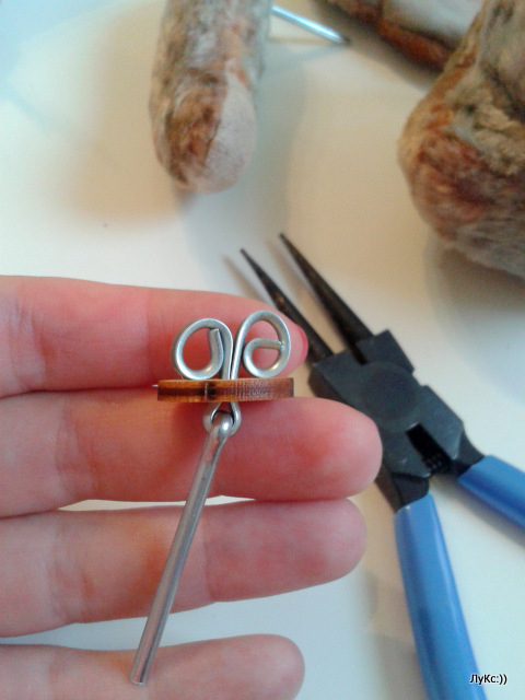 "Барашком" вставляем в отверстие головы, чтобы шплинт торчал посередине, как бы из шеи.