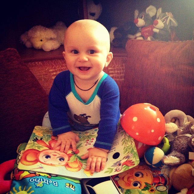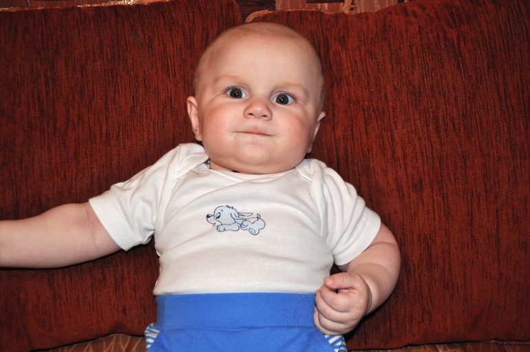 - пару раз сказал "Ма-ма", но больше похоже на неосознанное произношение слогов;