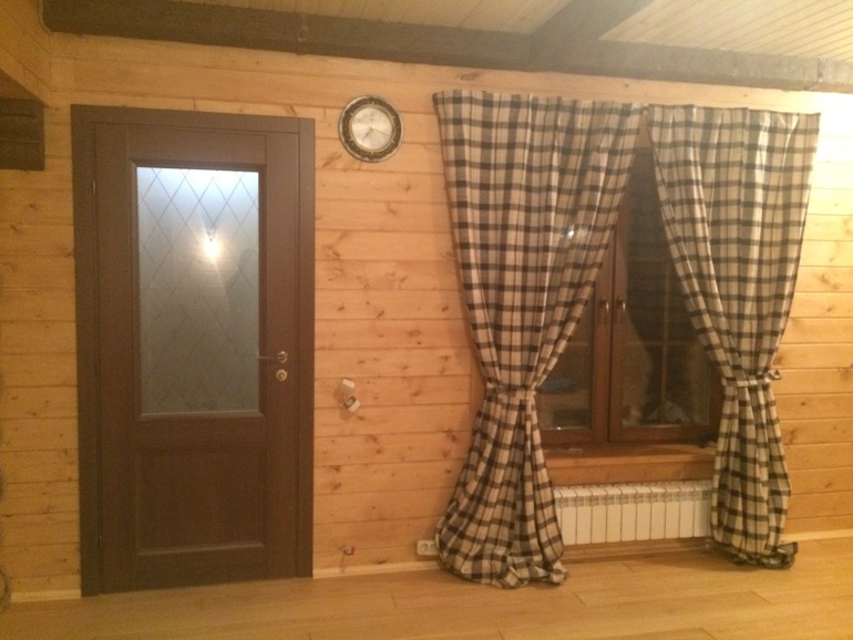 Здесь у меня примерка штор. Подрезать надо только покороче. Очень уютно с ними, такие теплые и домашние.