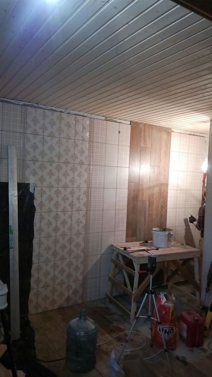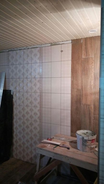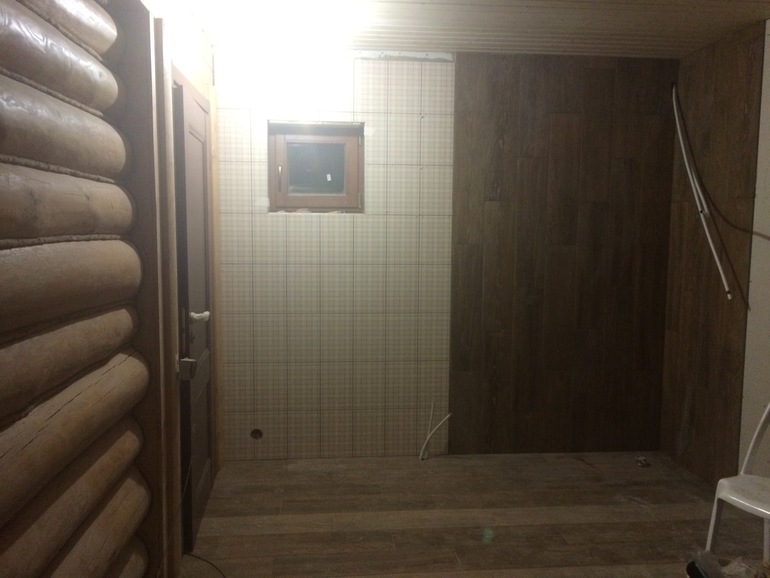 Ну а это самое мое место))) - помывочная. Она балдежная получается! Раскладку плитки нам наша любимая дизайнер делала - красота необыкновенная получается! Не без сложностей, конечно))). Но плиточник у нас терпеливый и трудолюбивый))) Делает потихоньку, старается.