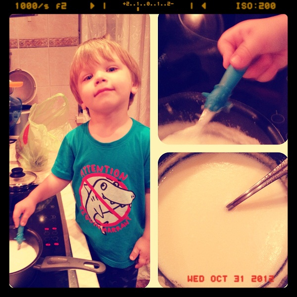 Хозяйственный чувак растет ) и посолить не забывает, и помешать..... красота!