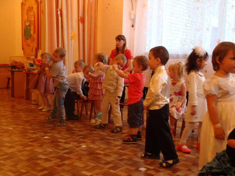 рубахи на выпуск потому что из родителей в раздевалке была я и ещё одна мама,так что детей одевали на скорую руку воспитатели.А в зал пришли максимум 7родителей.Деток было 18челочек.Я хоть первый раз увидела как МОЙ пляшет(пяточка,носочек 1..2..3..) и песни поёт :)))))умильно так!