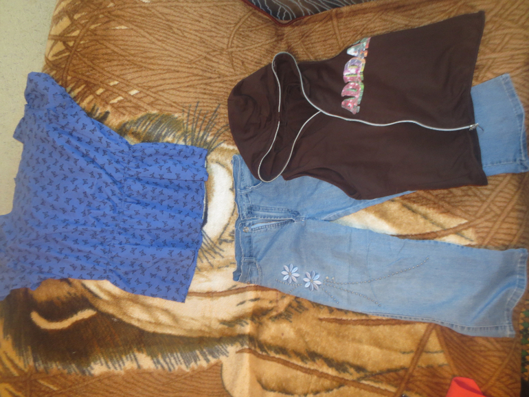 - коричневая кофта с цветами узкая, на 42 р. не больше,