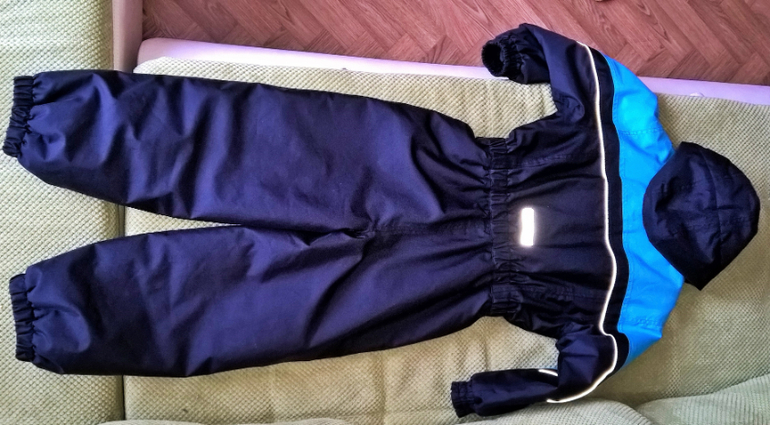 Цвет синий с голубым Есть деффект Дырочка на коленке.При носке не видна в крайнем случае можно эмблемупришить.Мембрана с водонепроницаемостью в 6000мм он тонкий, не сковывет движения- дышащий, но непродуваемый- ткань плотная- глубокий капюшон с резинкой- штрипки, светоотражатели, ветрозащитные планки на молнии.- красивый, яркий