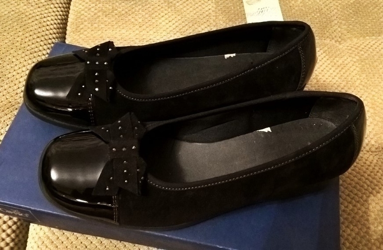 Размер 38 на 25 см Эквив 6000 .Смотрятся на ножке аккуратно,подарили но не мой стиль.Мягкие как тапки,только примерила .В родной коробке