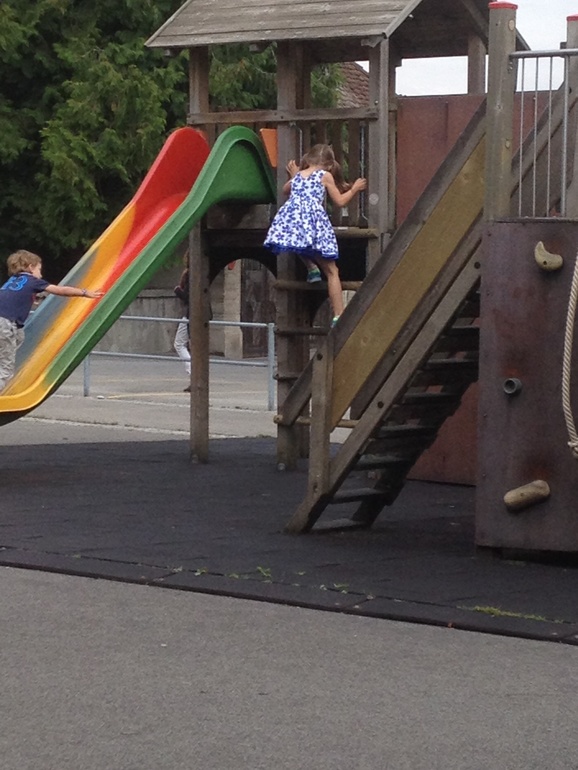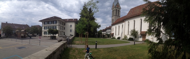 Их нравы... (национальные особенности)Воскресенье . Мы на площадке перед школой. За школой церковь.