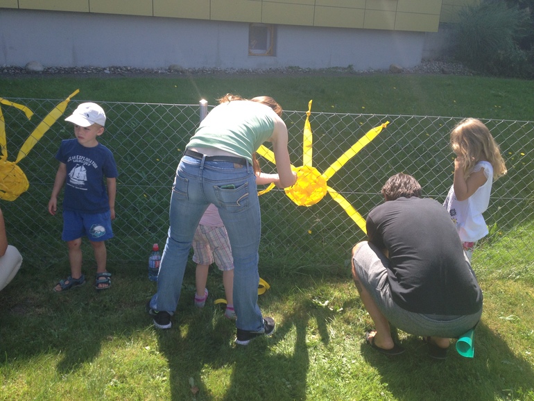 Именно 15 августа начался у нас учебный год. С 4 лет у детей обязательный киндергартен. можно на год перенести это удовольствие, что мы и сделали... но все равно.. я ооочень не хотела... так как не знала, что это за зверь и с чем его едят, что там делают и что это должно дать моему ребенку...Я заранее опрашивала всех знакомых детей и родителей, но 100% положительных высказываний с улыбкой на губах меня все равно не расслабляли. В саду еще пара человек должны были пойти в киндергартен.. Все они с нетерпением ждали этого дня.. Мой ребенок - как обычно- вопреки всем, этого дня не ждал.. он вообще не хотел, чтоб ему исполнилось 5.Я, персонал в саду , логопед и другие задействованные лица где то за 2 месяца проводили ребенку легкую "промывку мозгов" на тему " как хорошо в киндергартене".. с книжками, картинками, бесадами со старшими детьми и тд.. и вроде как ближе к дате деть мой не ворочил нос при упоминании "киндергартена". И вот наступил день Икс. В приглашении было написано- приходить к 13.30, и забрать детей в 15.00.. Это был понедельник. Мы с ребенком в 10.30 утра сбегали в бассейн.. такой кайф был- пустой бассейн, и все игрушки и горки в нем- твои! у всех же начался учкбный год... и никого не было! Потом быстренько домой поесть, и вперед... бегом бегом... а бежать нам от дома до киндергартена целых 30 метрв.. плюс минус.И вот перед самым забором воодушевление ребенка просто взяло и испарилось- штопор..! ни взад, ни вперед.. В итоге спрятался за папу, вошел в дом так же, за его спиной, и сев на стул в кружочке, держался за папу.. потом был типа " тимбилдинг", где каждый ребенок получал по 3 солнечных лучика, чтоб вместе с родителями прикрепить их к заготовке на заборе...