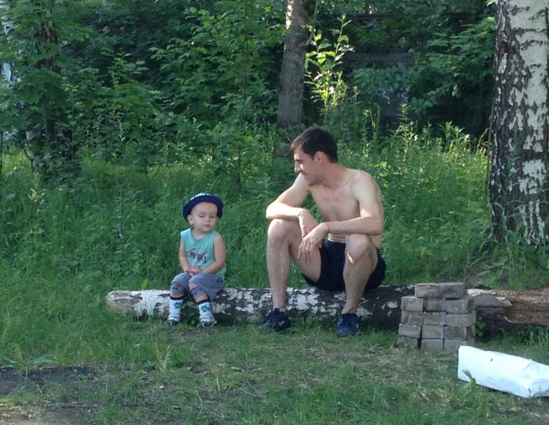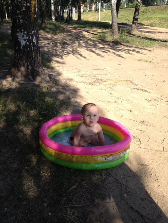 Фото ГлебусиВот так мы припозднились! Думали ехать на речку, но стало лень. Взяли Глебу бассейн и ушли в лес.